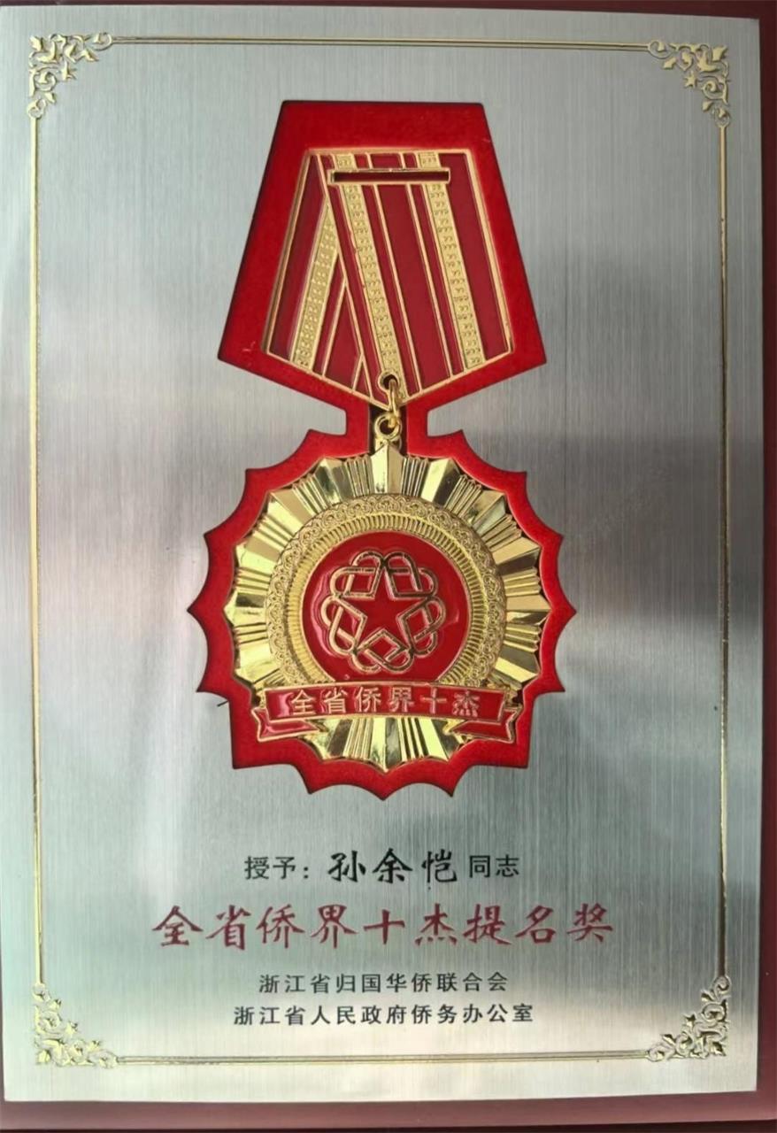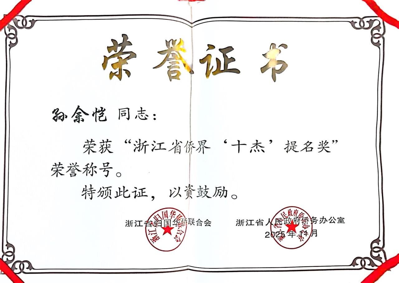 【喜报】孙余恺博士荣获浙江省侨界“十杰”提名奖!